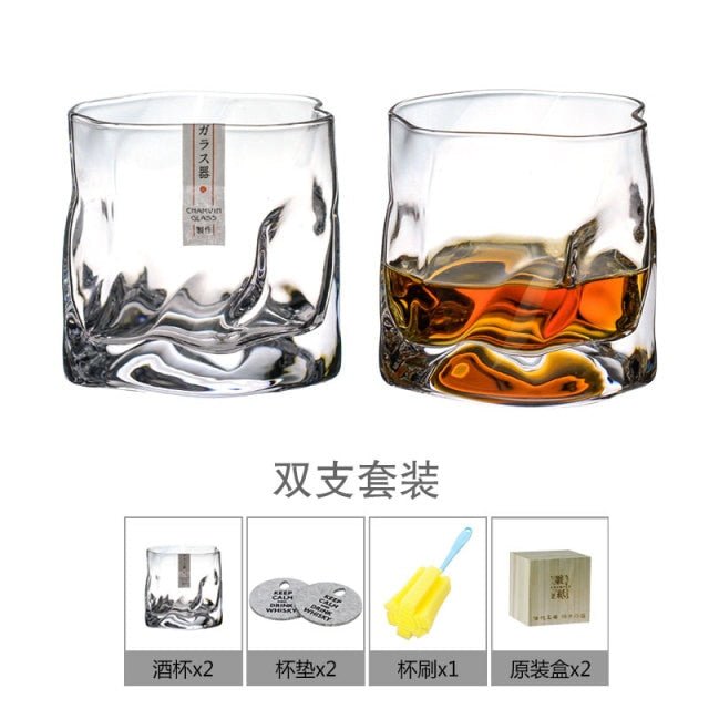 Chamvin Edo Cut Cup Japanese Whiskey Glass Wine Cocktail Glasses Crumple Paper Bar Rock Cup With Wooden Box